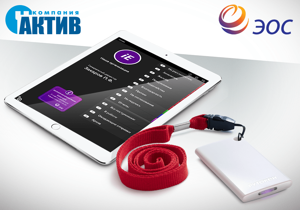 По результатам испытаний, проведенных специалистами компаний «ЭОС» и «Актив», подтверждена совместимость и корректность работы электронных идентификаторов Рутокен ЭЦП Bluetooth и мобильного приложения iEOS. Приложение iEOS предназначено для обеспечения взаимодействия пользователей с системами электронного документооборота (СЭД), разработанных компанией «ЭОС», посредством iPad. В данном приложении пользователи могут подписывать документы усиленной квалифицированной электронной подписью.