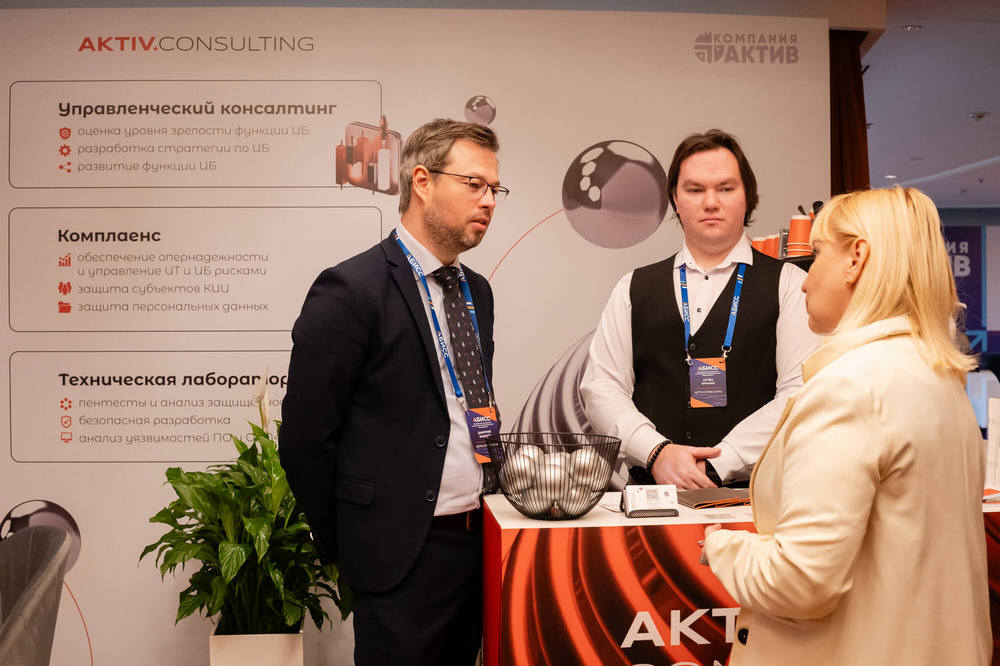 Команда AKTIV.CONSULTING привлекла внимание гостей конференции своим стендом: на протяжении всего мероприятия эксперты предоставляли консультации всем желающим и дарили кастомный мерч.